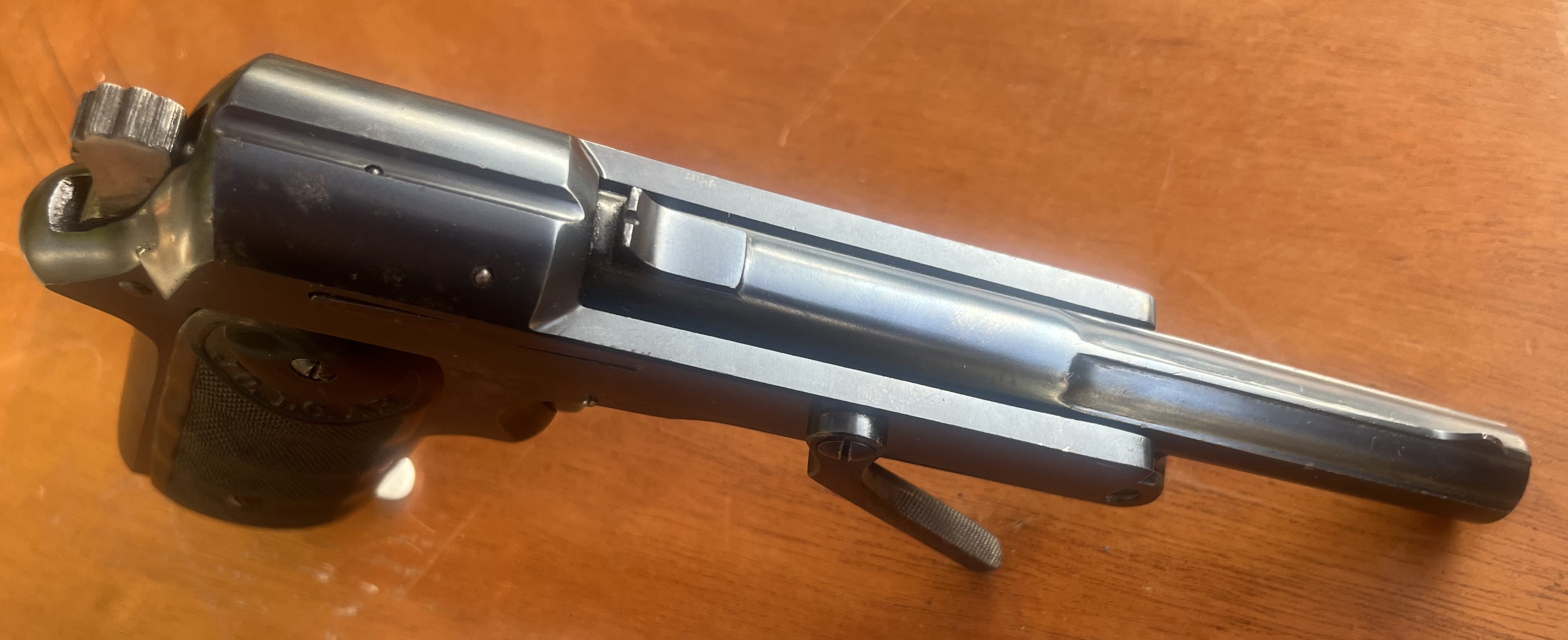 Le canon est fixe, la glissière est dégagée vers le haut.
