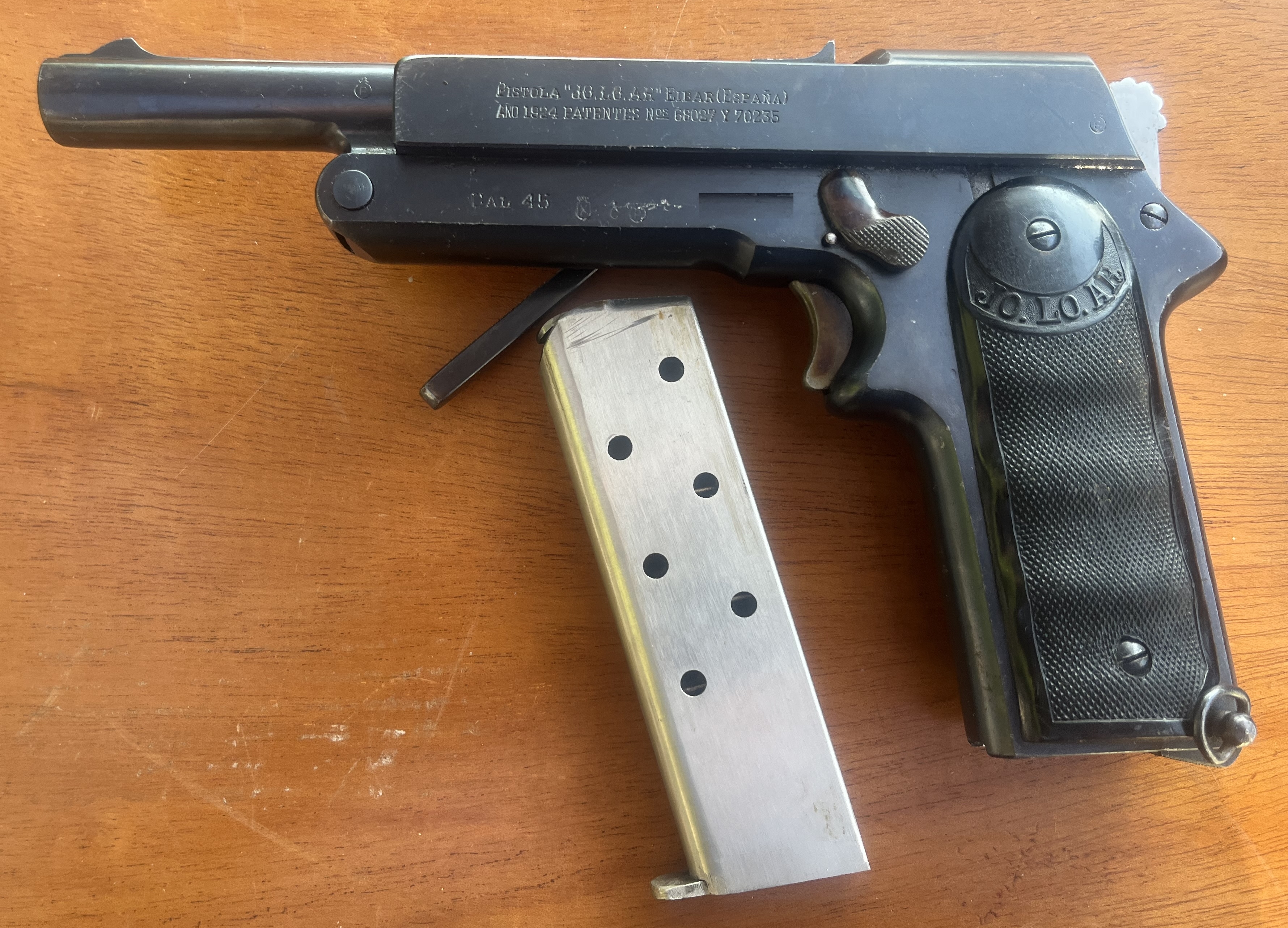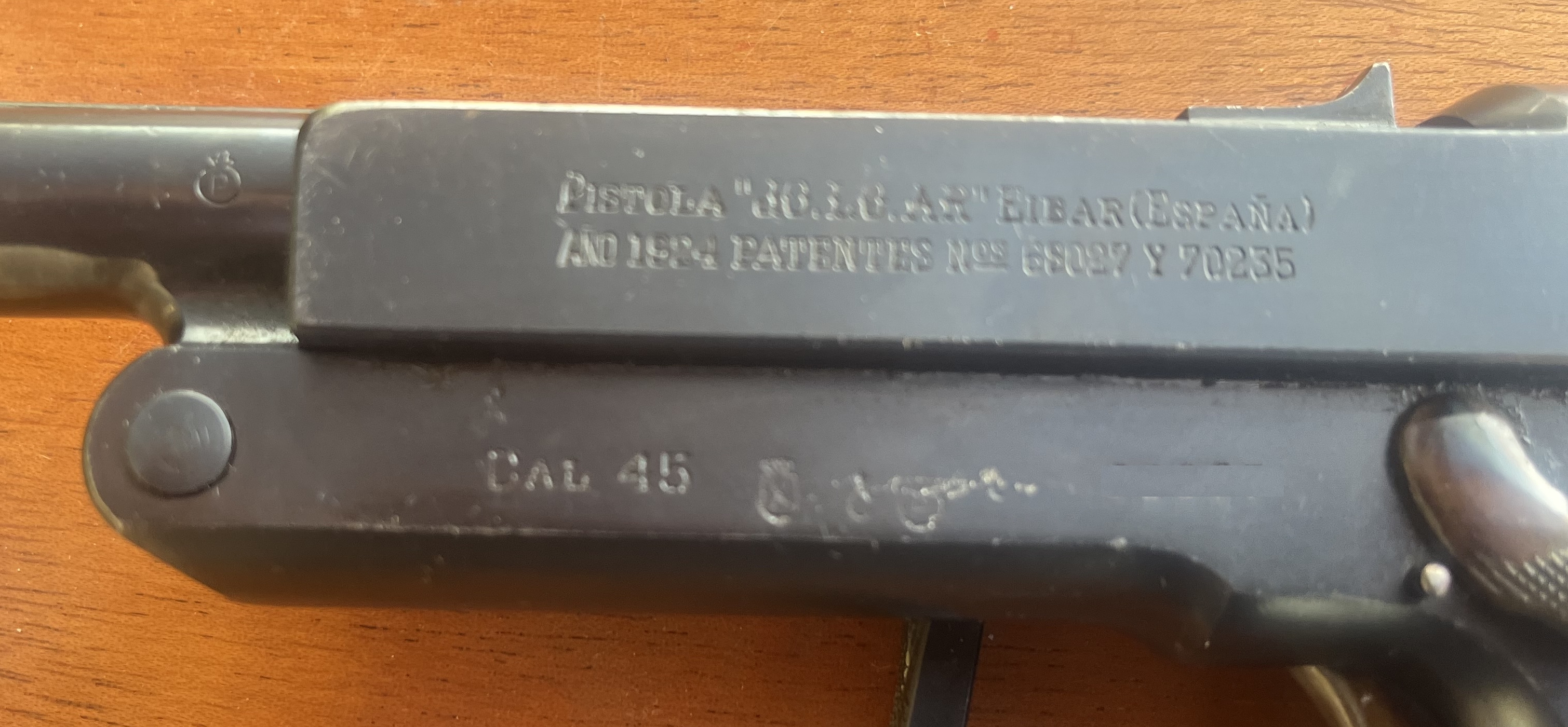 CAL 45 suivi de 3 poinçons et du numéro de série.