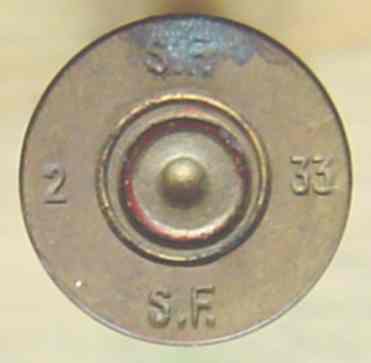 SF: Société Française des Munitions (Gévelot) à Paris. Cartouchier et parfois fournisseur de métal pour son propre compte. 2/33: fabrication du 2ème trimestre de 1933.