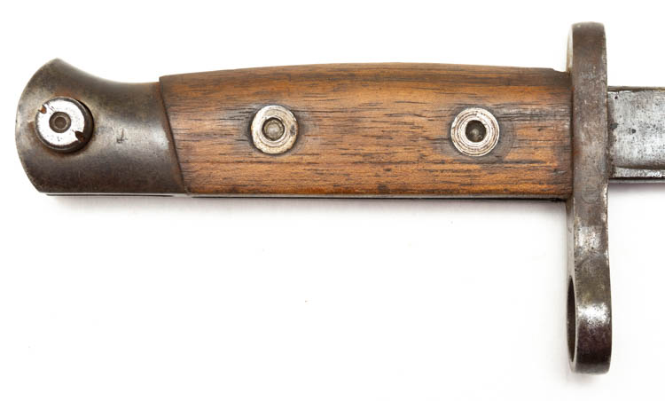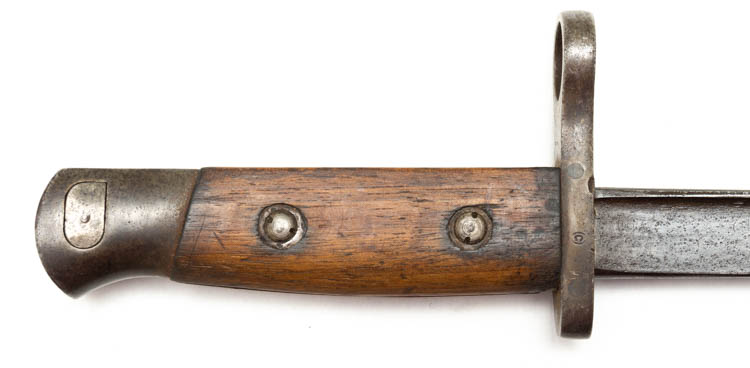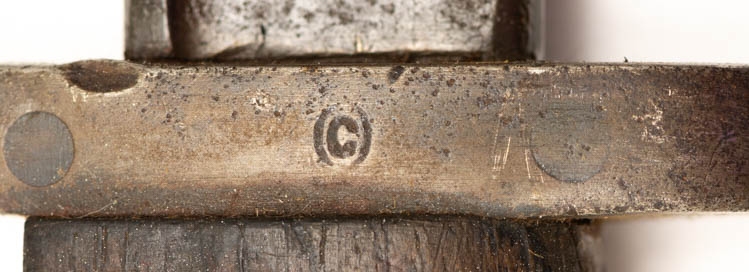 Lame: En T , tirée d'une baïonnette 1874 Gras, raccourcie à 433 mm et qui porte encore les traces du marquage de manufacture. Les ailes du T ont été légèrement meulées.