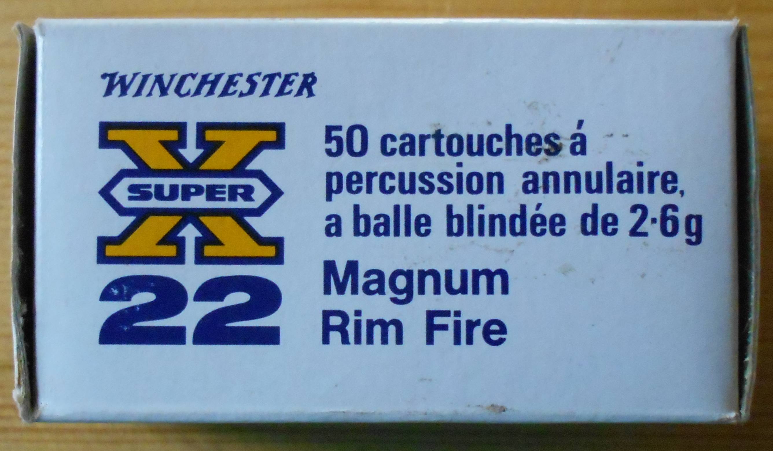 Winchester a présenté les .22 Winchester Mágnum (WMR) en 1950 pour surpasser les 22 LR. Son étui est plus long, de ce fait la capacité en poudre est augmentée. La pression atteint pratiquement la limite pour les cartouches à percussion annulaires.