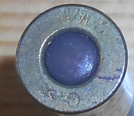 7 mm/GG: Monograme de la Société Gévelot, puis de la Société Française des Munitions. Les deux G entrelacés sont les initiales de Gévelot et Gaupillat, en creux ou en relief.