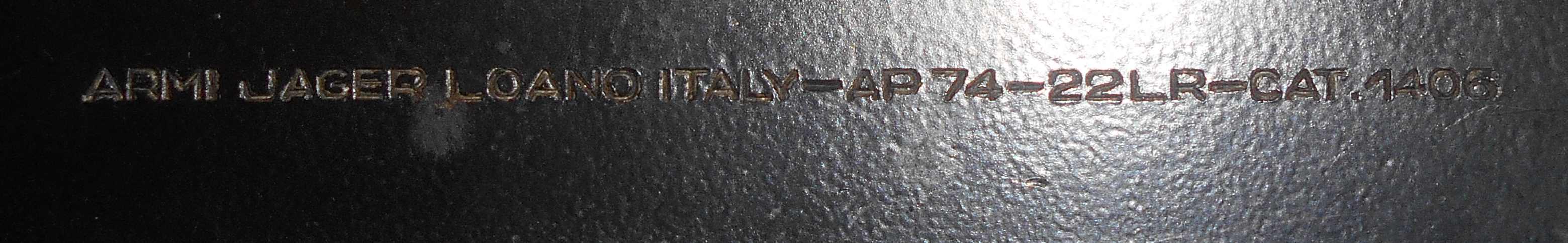 Cette arme à été introduite en 1974. Les A.P. 74 est en tout point identique à l'A.P.15 fabriquée à partir de 1971 (sauf le frein de bouche), son appellation vient d'un changement de nomenclature. Depuis, d'autres variantes sont venues s'ajouter au modèle de base. Ces armes sont fabriquées par Armi Jäger di Armando Piscetta, Loano (Italie). Les A.P. 15/A.P. 74 ont données naissances à une gamme de carabines semi-automatiques destinées au tir récréatif ou à l'équipement des forces de police, car elles sont disponibles en 22 Long Rifleou en 7,65 Browning. "