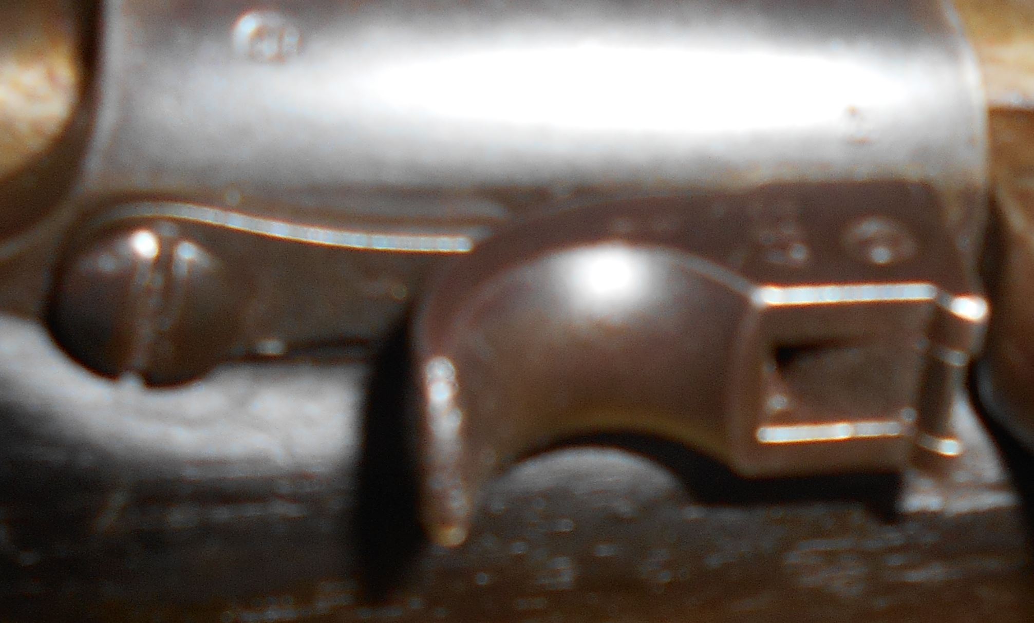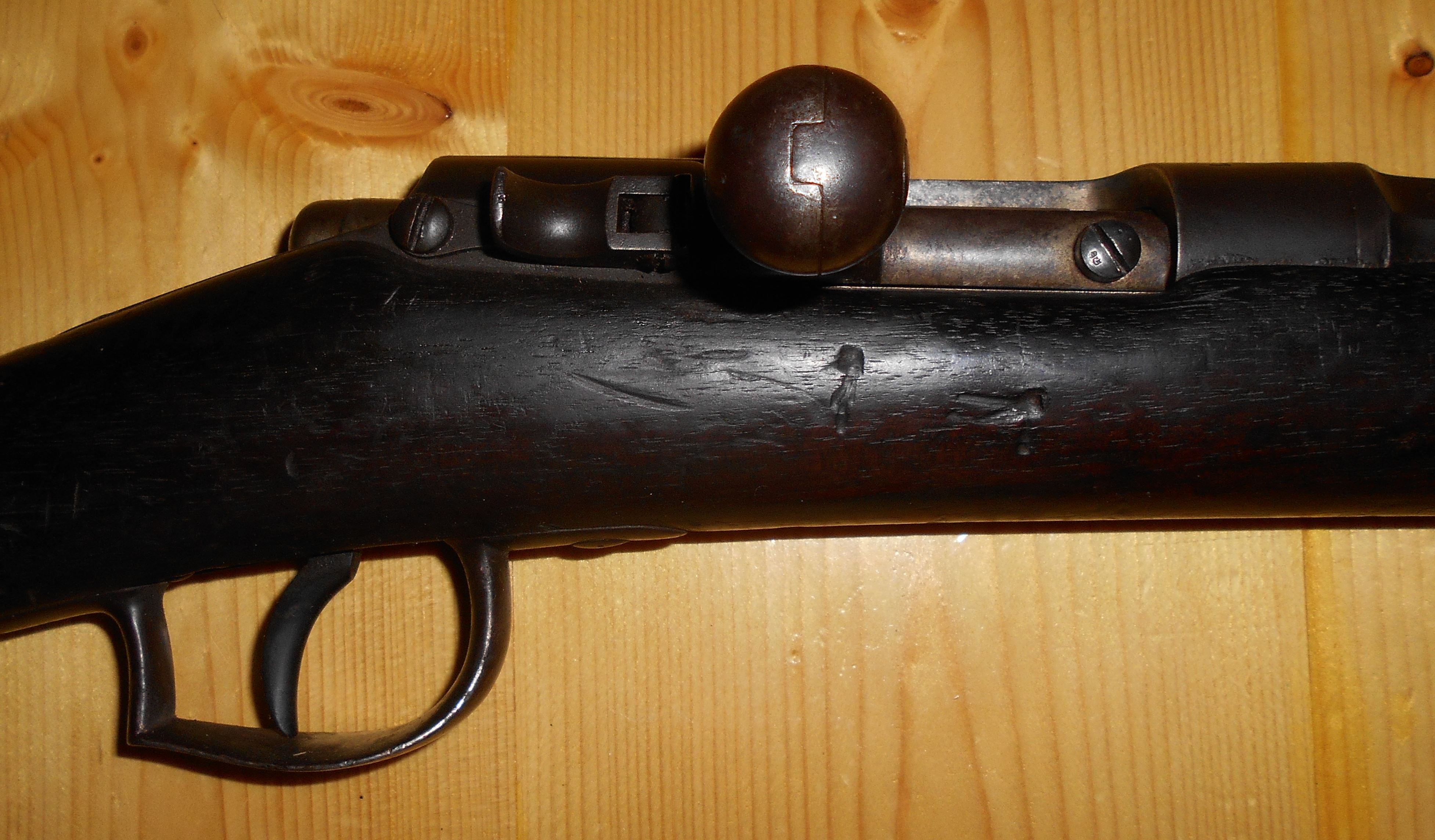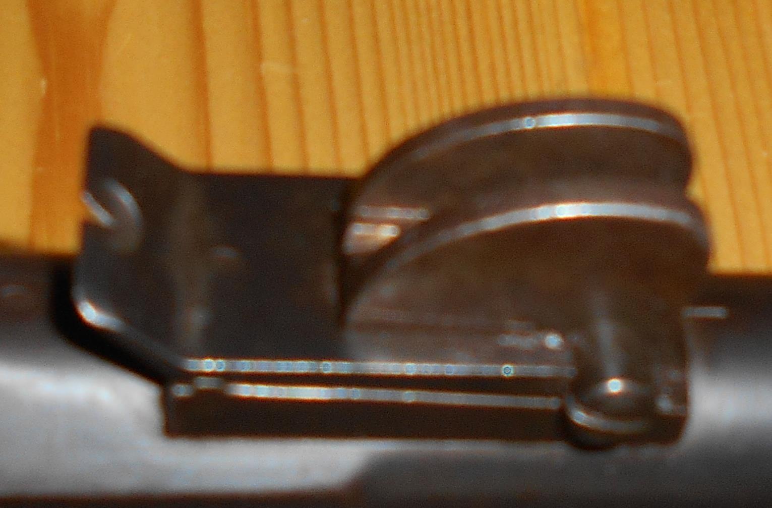 Cette arme ne comporte pas de magasin et possède une sécurité du côté droit qui fixe le verrou en position demi-fermé.