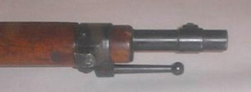 Le modèle de l'arme Steyr M.95 se trouve sur le dessus du boîtier culasse.