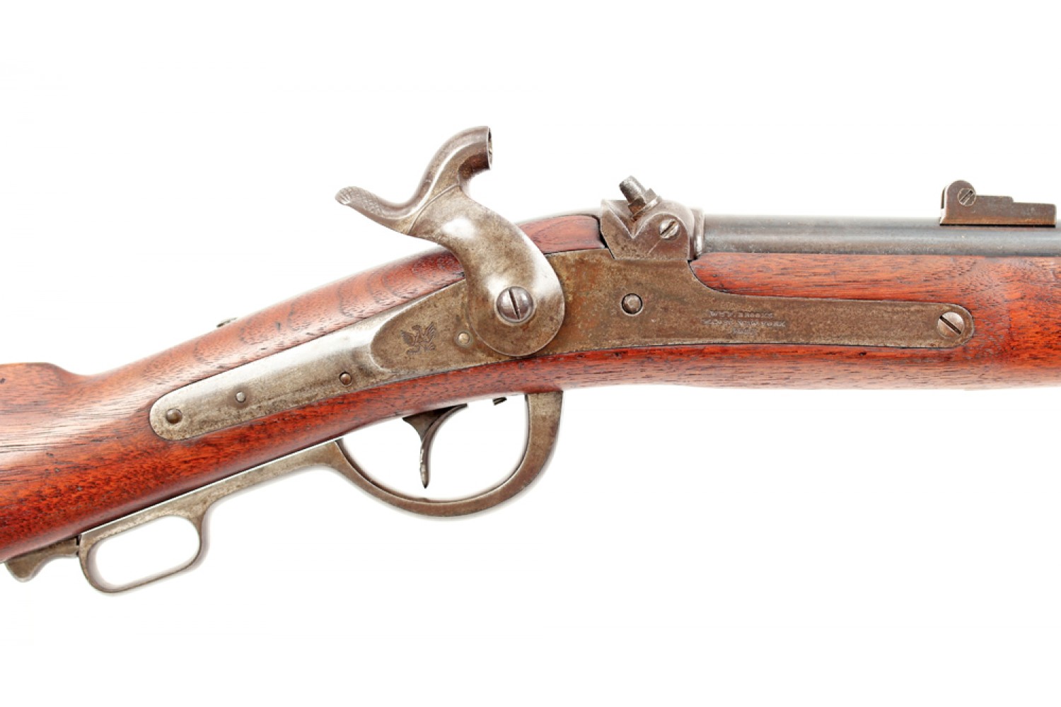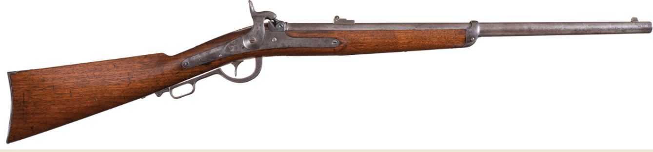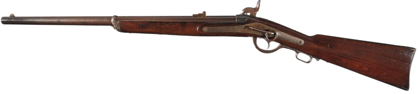 Cette arme extrêmement rare est très intéressante à plus d'un titre, elle présente un système de fonctionnement peu habituel. L'abaissement du levier de sous-garde formant pontet induit le pivotement du canon vers l'avant, de sorte que cette carabine à percussion d'apparence classique peut être chargée par l'arrière, au moyen de cartouches combustibles. L'amorçage séparé est de type conventionnel et s'effectue au moyen de capsules venant s'enchâsser sur la cheminée de l'arme.