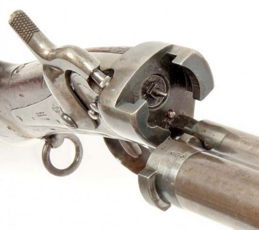 Au lieu d'opter pour un système faisant intervenir une culasse mobile, Greene choisit de créer une arme à canon pivotant autour d'un axe logé sous le tube , parallèlement à lui, la culasse étant totalement fixe. Les brevet déposé le 27 juin 1854 est expliqué ainsi, le brevet est relatif à l'emploi d'une bague auto-ajustable logée à l'arrière du canon. Elle est maintenue en place par la pression des gaz, au moment de la décharge. Elle n'est par réellement reliée au canon car elle est flottante et peut ainsi rattraper l'usure du plan de joint entre la culasse et le canon.