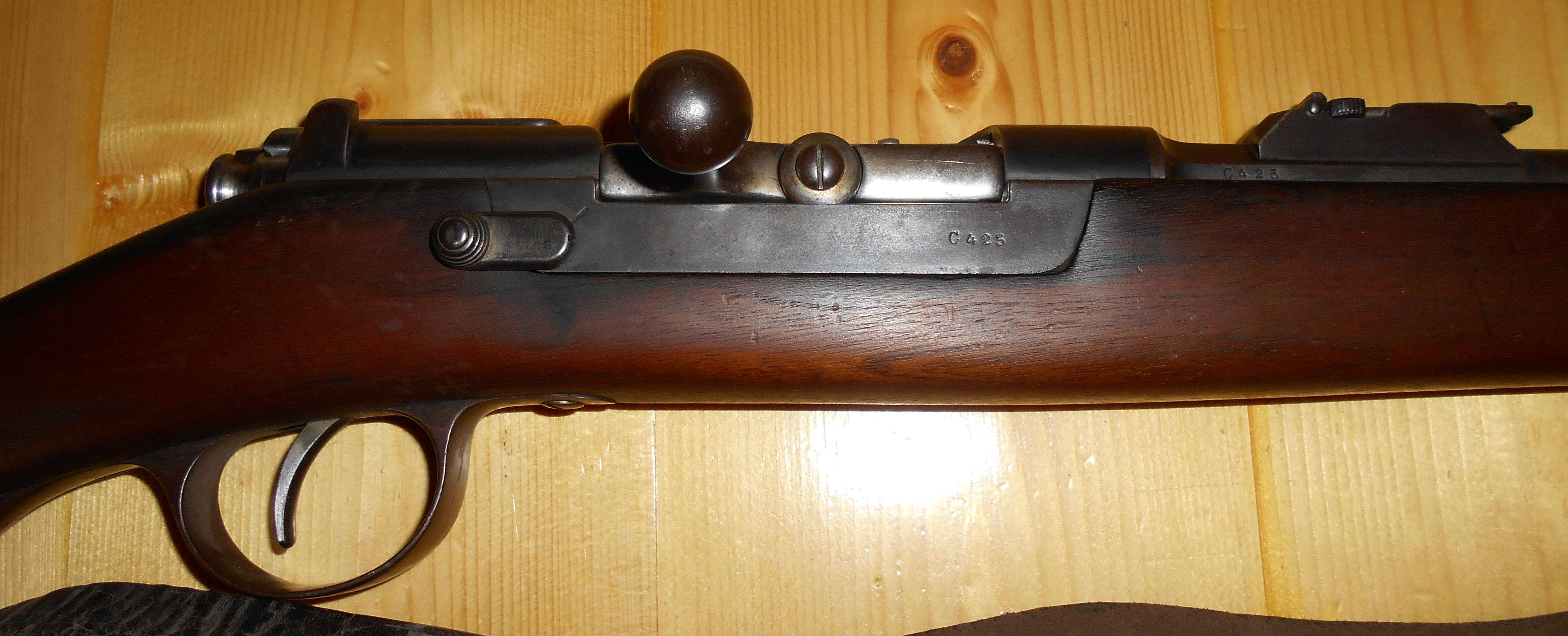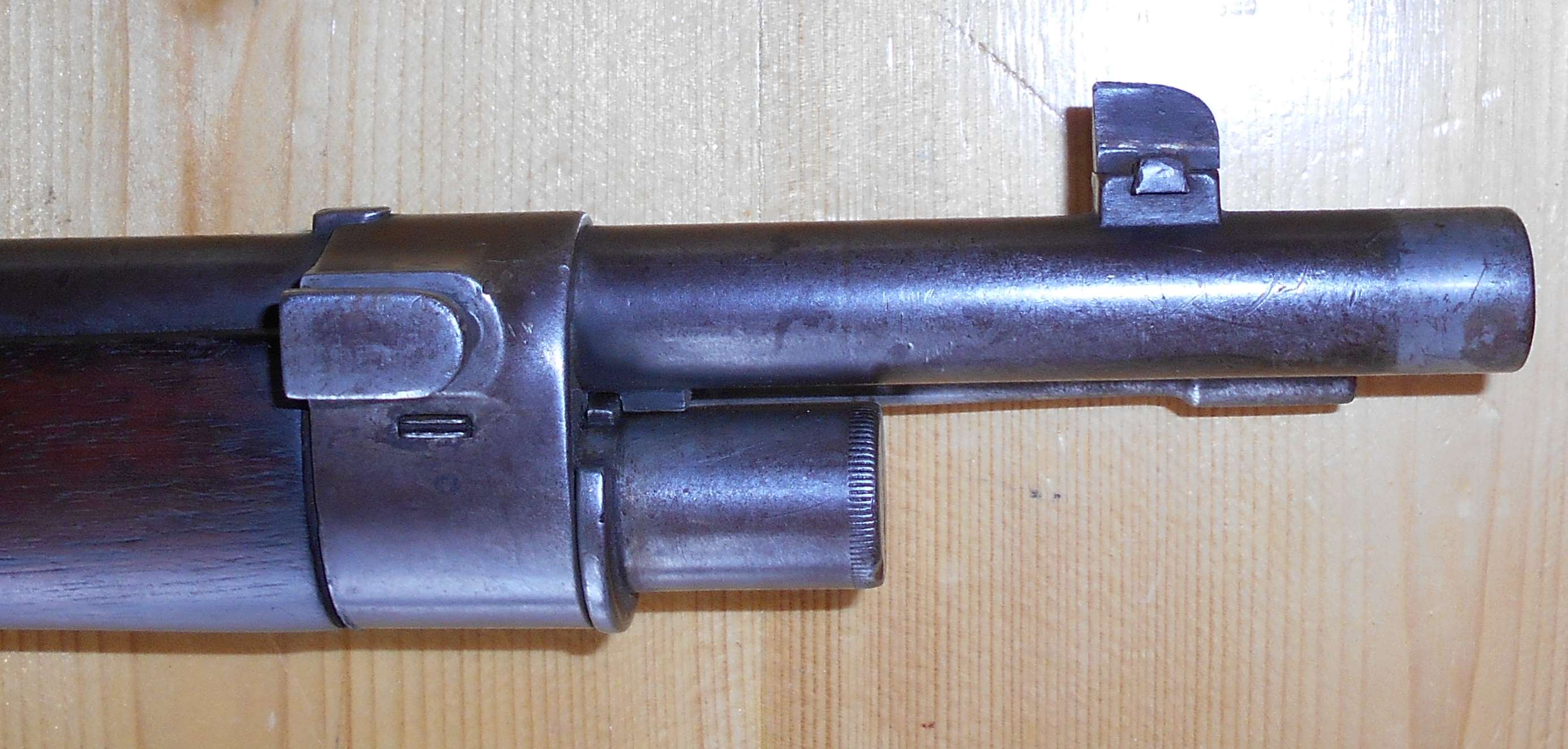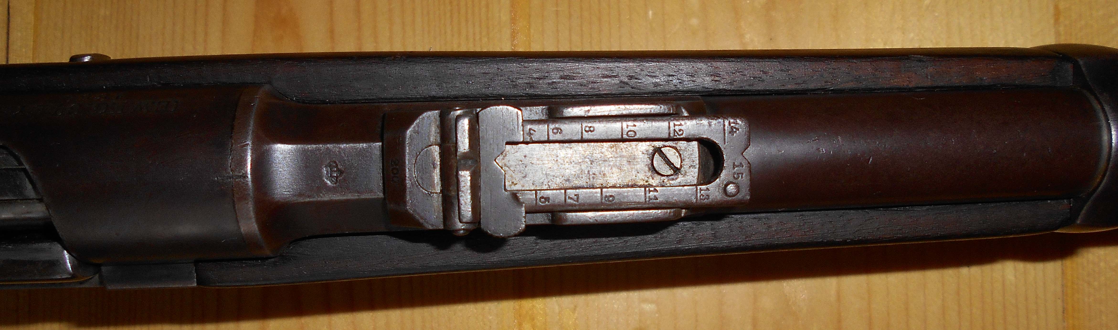Les organes de visée sont constitués d'un guidon nu et d'une hausse à curseur et planchette.
