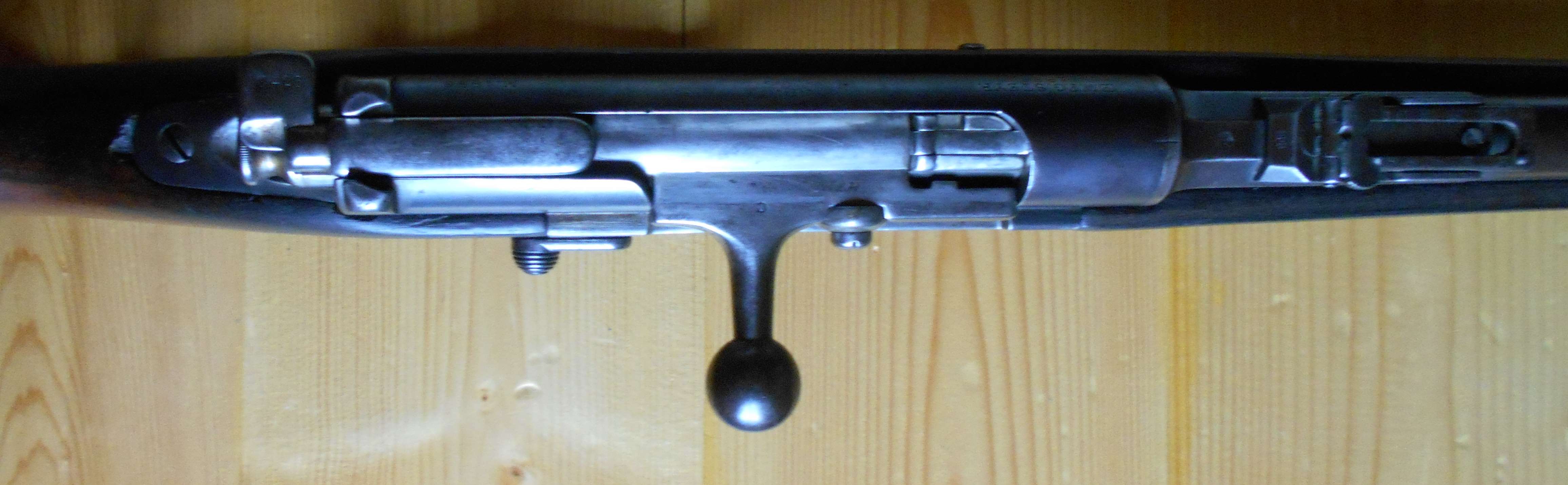 Le verrouillage se fait par l'appui du renfort du levier d'armement sur la paroi droite de la boîte de culasse.
