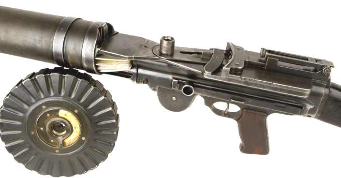 Le canon est placé dans l'axe de la culasse, il se termine par un cache-flamme dont le modèle peu varier suivant les versions de l'arme. Autour de ce canon, on trouver un radiateur composé d'ailettes en aluminium, contenu dans un gros manchon cylindrique en acier.