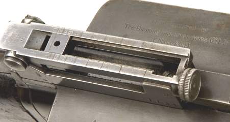 Les organes de visée sont constitués d'un guidon nu et d'une hausse à curseur et planchette pliante (200 - 2 000 yards).