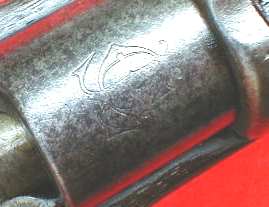 Sur le côté gauche de la chambre, on trouve les lettres O.V.S. pour Orange Vree State. Au-dessus se trouve un numéro d'inventaire.
