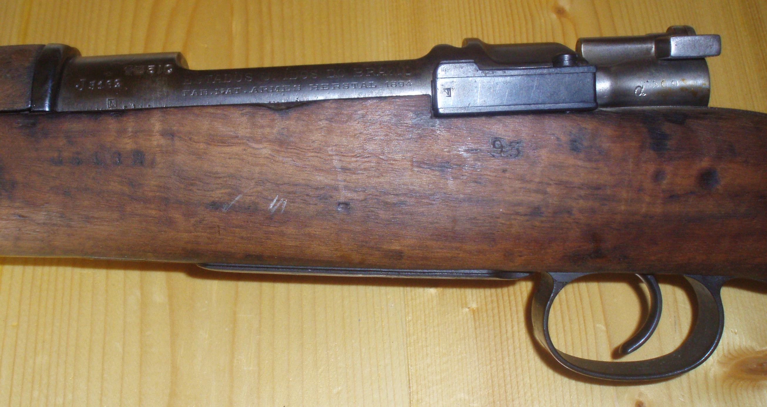 Cette arme est identique au Mauser Mle 1893 espagnol mais ce modèle possède un chanfrein sur l'élévateur, ce qui permet le verrouillage de l'arme vide sans intervention sur l'élévateur.