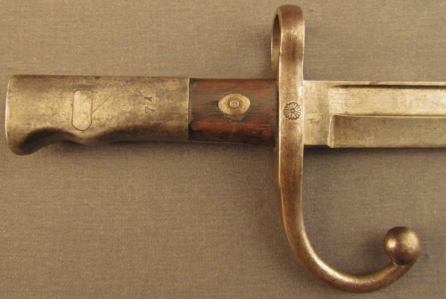 Remarques: La baïonnette Murata type 22, style B a remplacée le modèle style A. Elle en diffère par la poignée qui est en peu plus longue. Elle a une allure très particulière avec son pommeau très long accompagné de plaquettes très courtes. Certains exemplaires portent un nombre au talon de pommeau.
