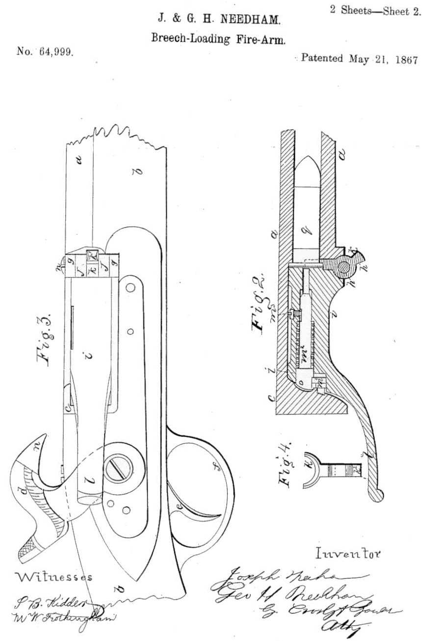 A la fin de la guerre de Sécession lance un programme afin de trouver un système de conversion à chargement par la culasse pour convertir les nombreux fusils en stock. Joseph et Georges Henry Needham après avoir obtenu un brevet dans leur pays en 1865, le dépose aux Etats Unis en 1867. Il est présenté sans succès à la Commission de New York en 1867 et à l'US Navy.