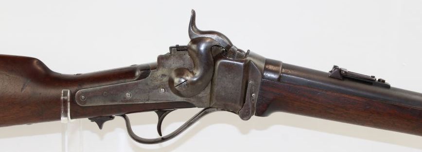 Mais en même temps que ce modèle, apparaît un grand perfectionnement de la cartouche, par le vernissage de son enveloppe avec une sorte de collodion la rendant réellement combustible. La flamme de la capsule perçant aisément le tissu ou le papier ainsi imprégné, dispensait d'en couper le fond, ce que, lorsque le tranchant de la partie supérieure était émoussée par l'usure, finissait par se faire souvent incomplètement, voire pas du tout. Grâce à cette nouvelle munition, la carabine Sharps arrivait presque à égaler les armes à cartouches métalliques. Mais l'invention arrivait trop tard, car déjà la munition métallique, présentant de plus l'avantage de contenir généralement son amorce, commençait à se répandre, et allait quelques années plus tard supplanter complètement la cartouche combustible.