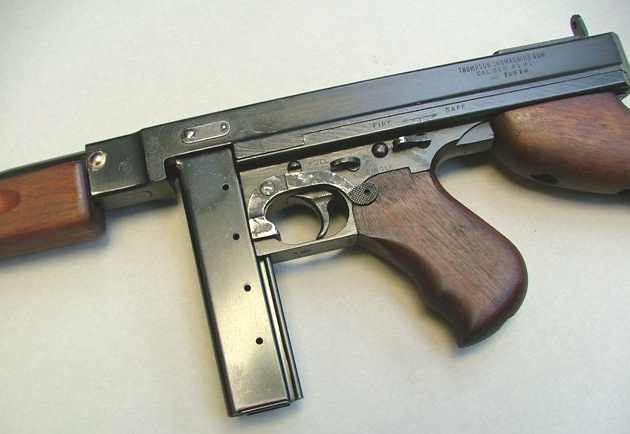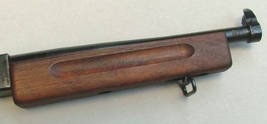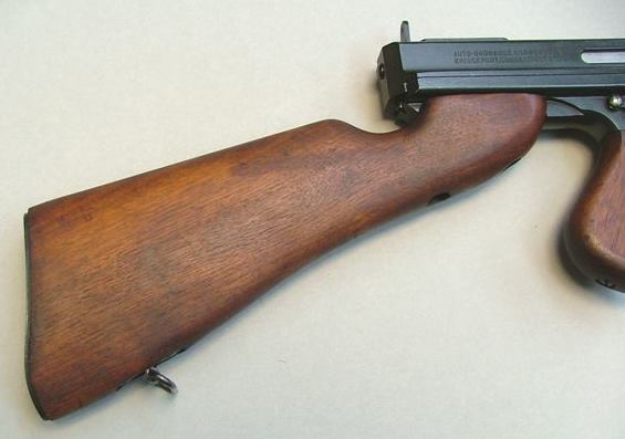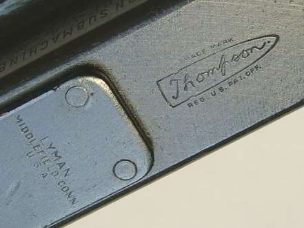 La crosse n'est plus amovible, le canon à cannelures et la poignée avant n'ont jamais été montés sur la Thompson M1.
