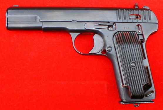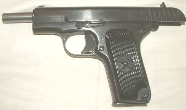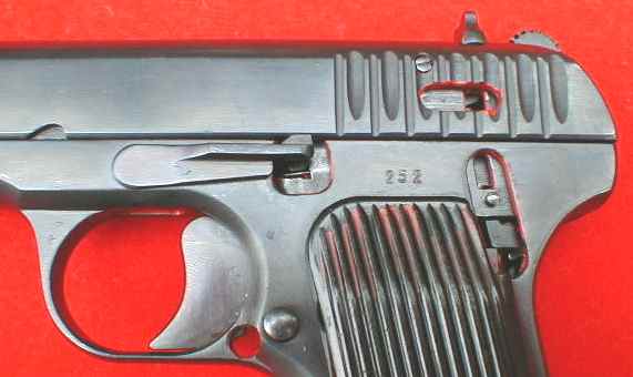 Le bloc platine du Tokarev possède deux bras antérieurs de longueurs inégales, parallèles au couloir d'alimentation, et dont les surfaces externes s'alignent avec les guides de la culasse.