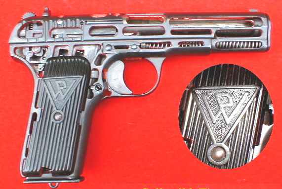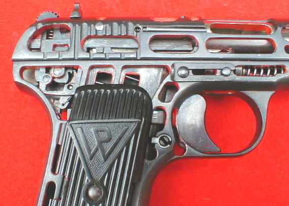 Cette platine est similaire à celle conçue par Charles Petters pour le pistolet français Mle 1935 A.