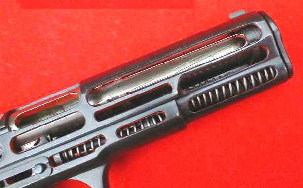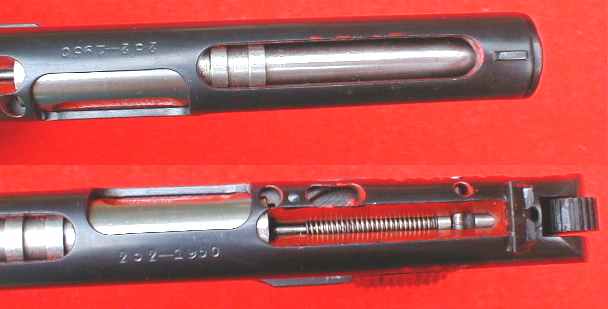 Contrairement au Browning, les tenons de verrouillage font le tour complet du canon. Bien que les sections inférieures des deux tenons ne servent pas pour la fermeture, ils ont permis de