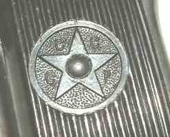 Les plaquettes de crosse, réalisées en bakélite moulée de couleur noire sont frappées d'une étoile ornée des lettres cyrilliques CCCP.