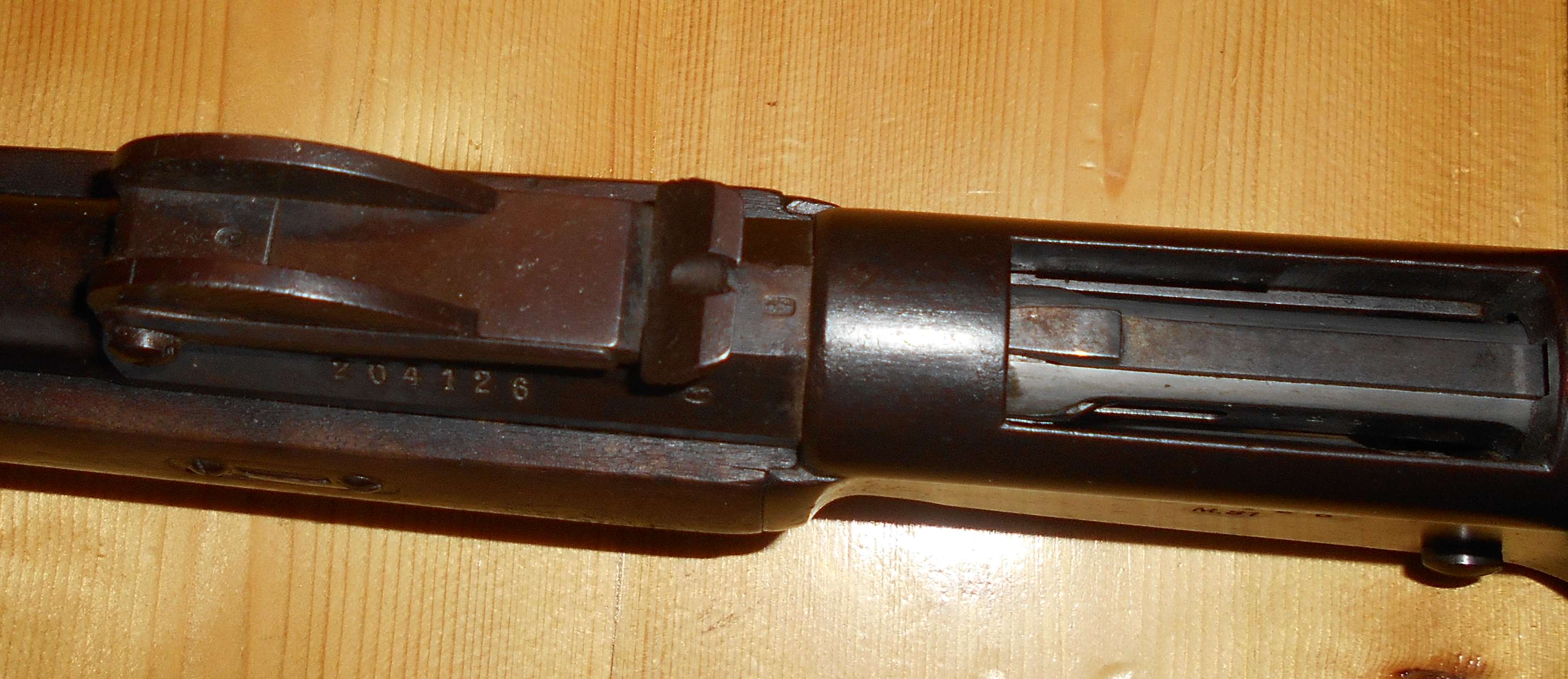Le numéro de série se trouve sur le côté gauche du canon au niveau de hausse. Il se répète sur différentes pièces de l'arme.