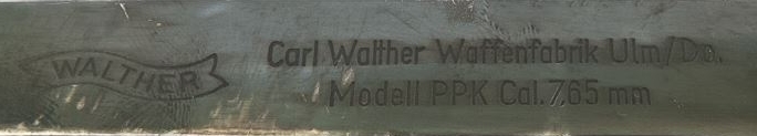 Les tous premiers PPK mis sur le marché furent souvent marqués Mod PP, ce qui indique que le nom de baptême définitif de ce modèle n'a peut-être été adopté par Walther qu'un peu plus tard. En fin de guerre, ces marquages furent souvent omis, alors que le code ac attribué à l'usine Walther était apposé du côté droit de la carcasse, sous le numéro de série.